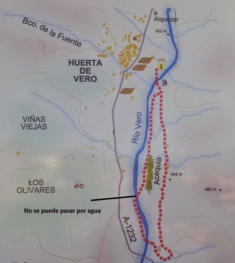 Al comienzo de la ruta nos encontramos el azud donde comienza el canal que lleva al molino de Huerta de Vero.