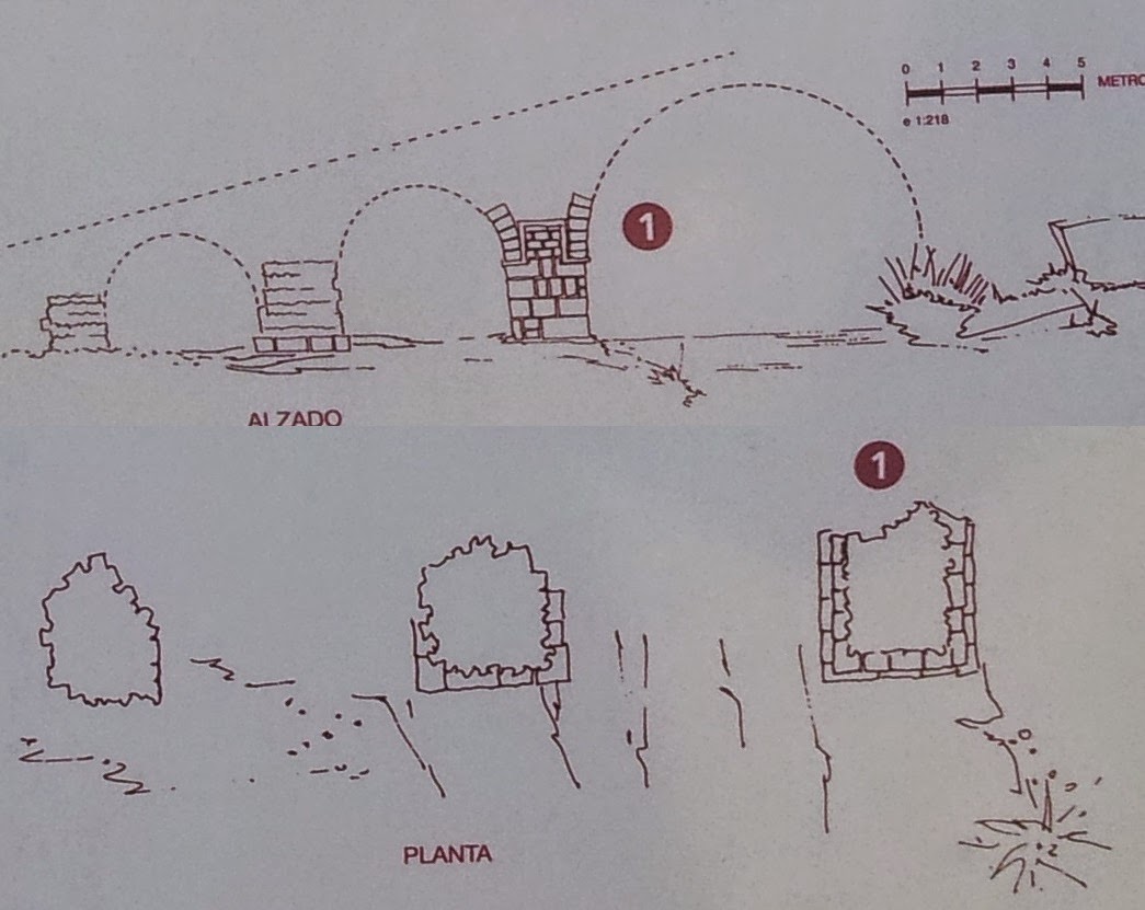 "Se trata de los restos de un puente, del que se conservan 3 pilas. Tuvo al menos 4 arcos, aunque es posible que tuviera 5. Su tablero, de una anchura de unos 2,40 m, era inclinado, a dos vertientes.
