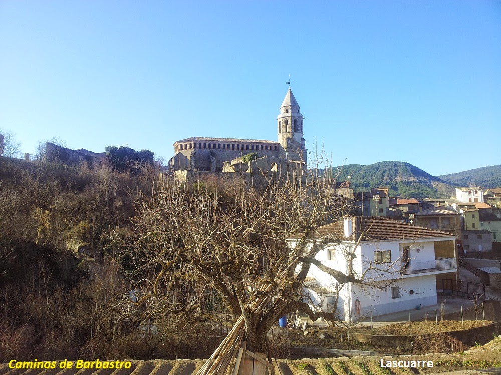 Salimos de Lascuarre, un pueblo en el Valle de Isábena. Destaca su iglesia de La Asunción.  Es uno de los más representativos del gótico aragonés. Fue originariamente un templo románico documentado el año 1092 empleado como templo del castillo.