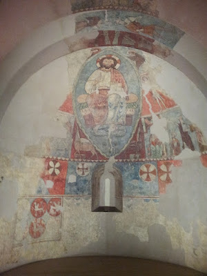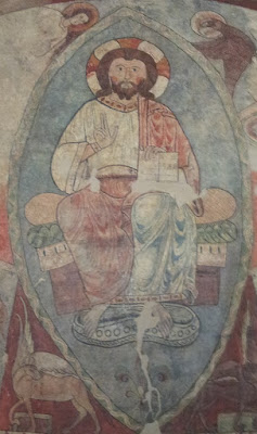 Aunque se halla parcialmente deteriorada la pintura, su escena central correspondiente a Cristo en Majestad flanqueado por los Tetramorfos (figuras de animales que representan a los evangelistas) se conserva muy bien. No así, otras partes donde se narra el martirio de San Vicente (izquierda) y la Epifanía (derecha).