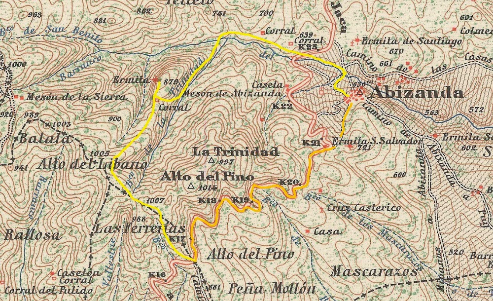 En el mapa adjunto vemos marcado en rojo el recorrido realizado y en naranja los 5 kilómetros que permiten convertirla en una ruta circular.