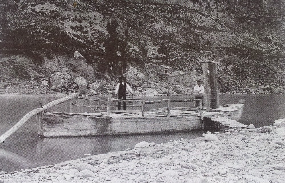 Este paso de barca de Abizanda se estableció en el año 1585, autorizando el señor de Clamosa a Joan Barbanoj a instalar una barca. Es una barca de "maroma" (cuerda). En el año 1904 Lucién Briet la fotografió. Más tarde, se cambió la barca por un cajón.