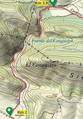 El inicio de la cañada es evidente para luego tener que bordear un campo de cultivo que nos lleva hacia el congosto.