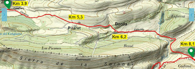 Ruta circular en la Sierra de La Carrodilla partiendo de Alins del Monte, yendo por la Cabañera de Azanuy y continuando por el camino de Estadilla a Calasanz.