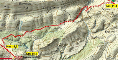 Volvemos atrás hasta el cruce con el camino de Estadilla en el Kilómetro 11,4 para seguir por la GR 23.